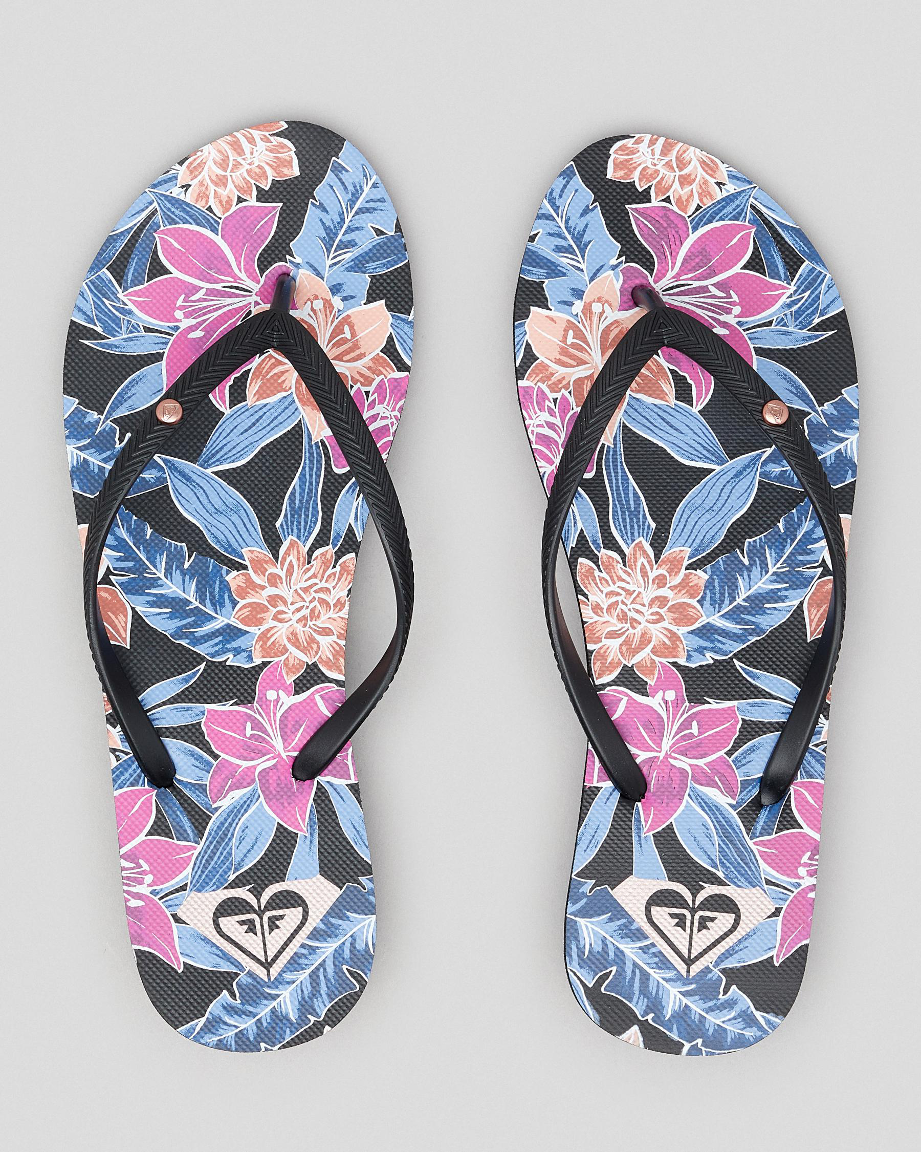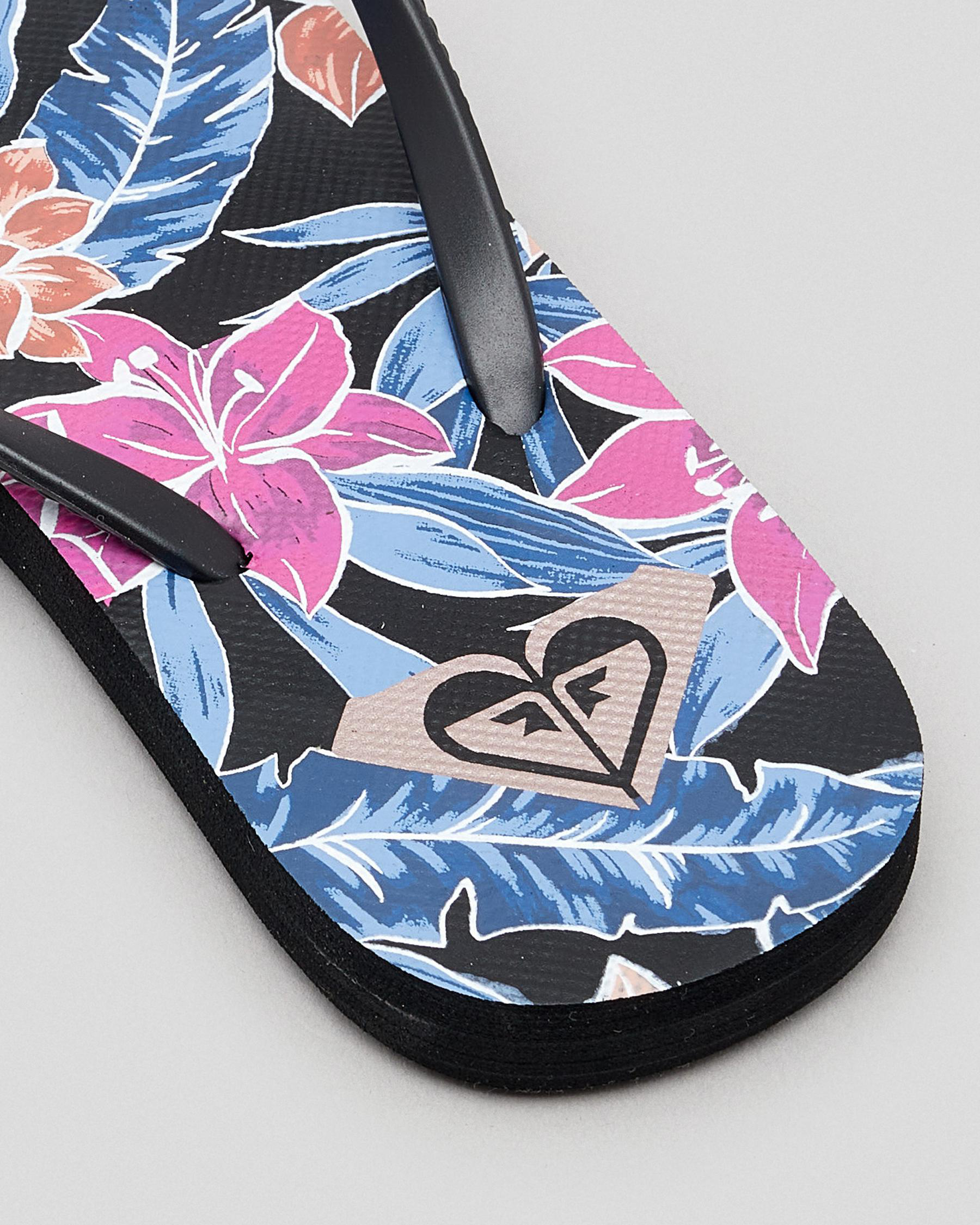 Slim straps, Textured footbed, Metal logo, Printed footbed