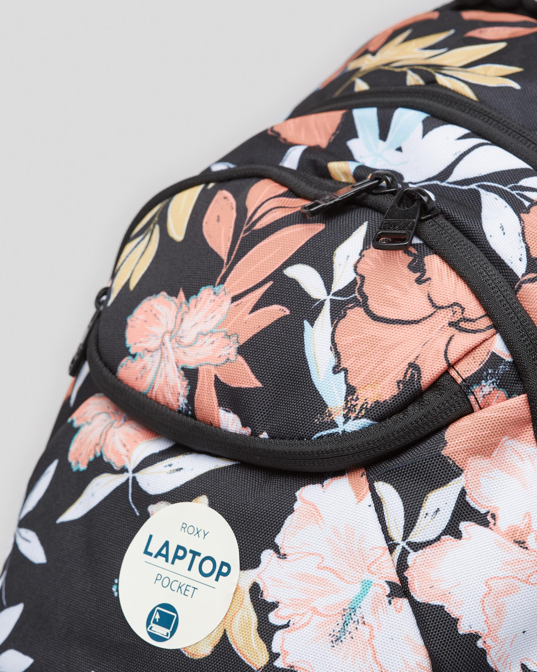 Handle, Padded straps, Padded backpanel, Media compartment, External zipped pocket, Fits A4 sized folders and books, Waterbottle pouch