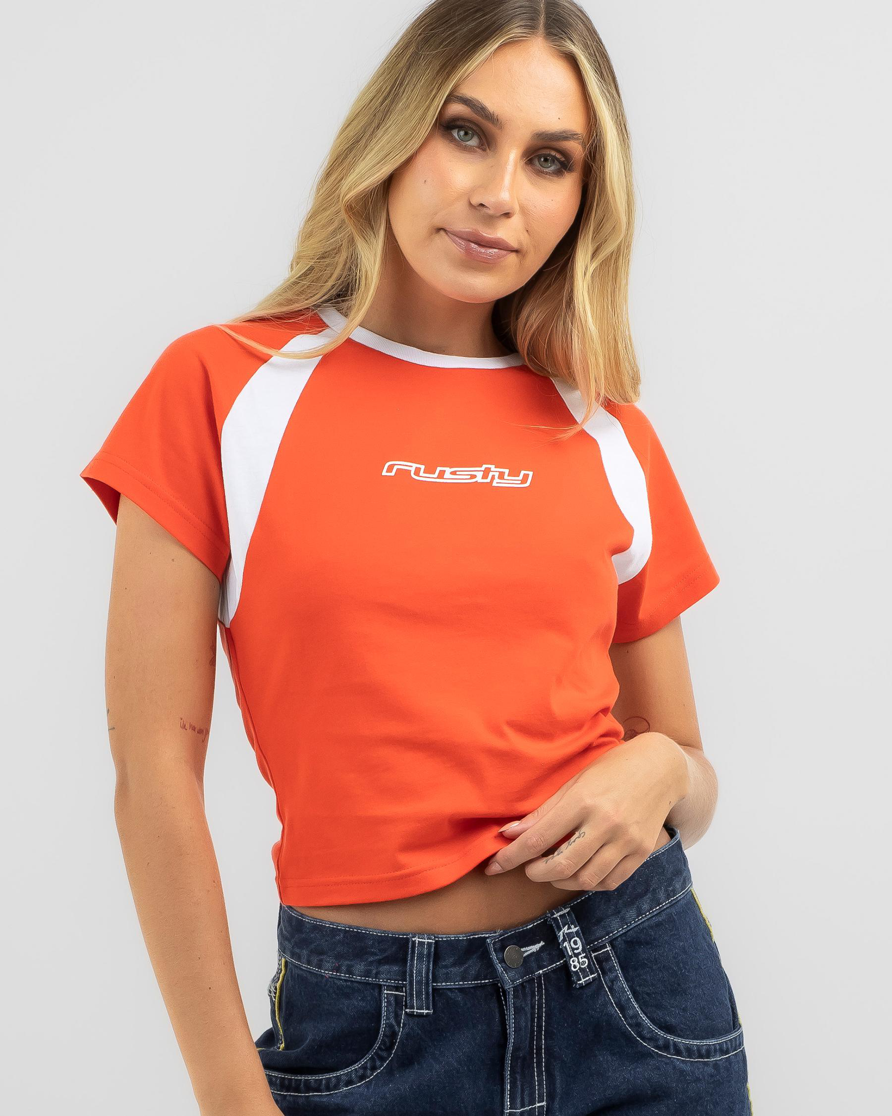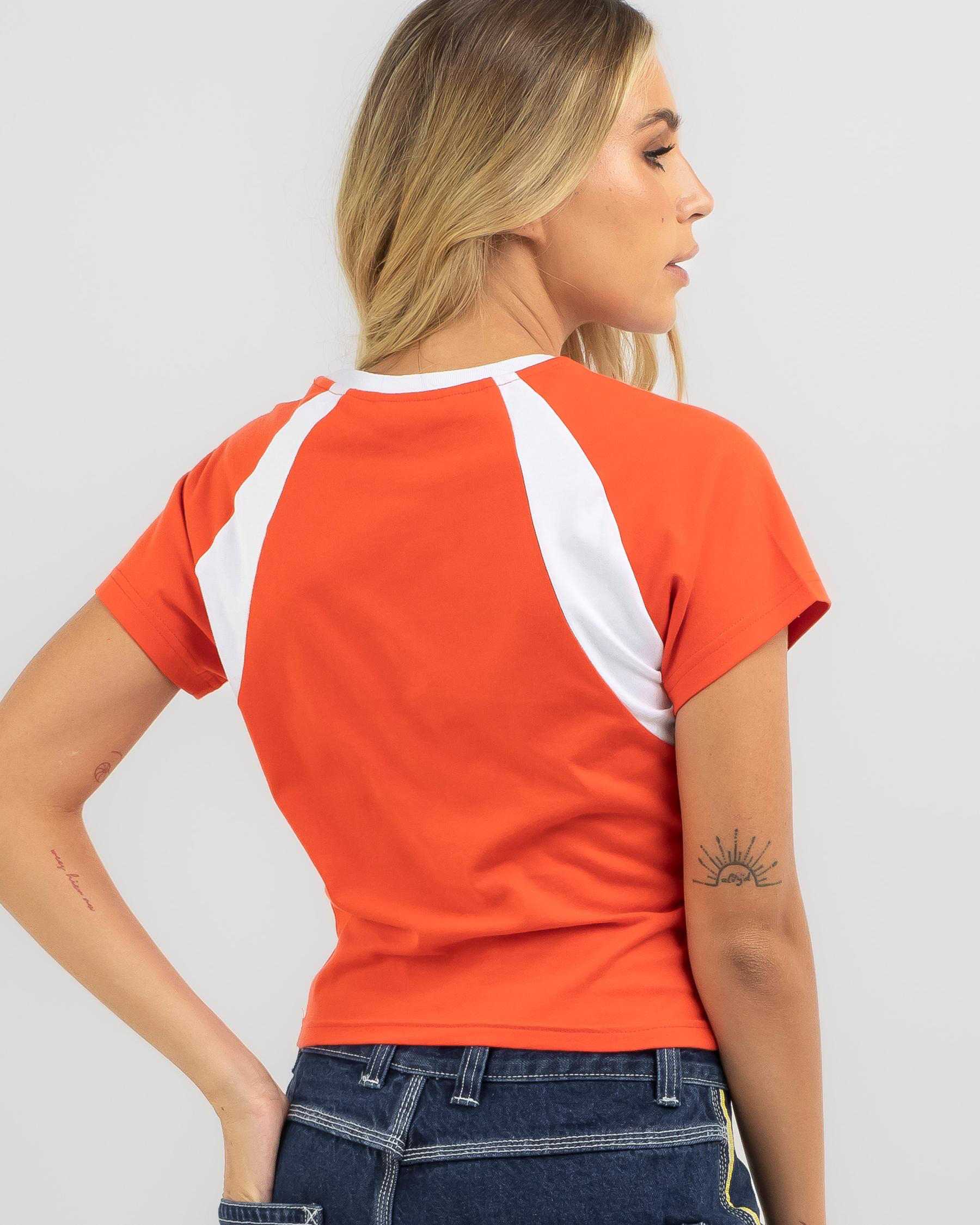 Rusty Contrast Paneled Skimmer Raglan T-Shirt for Womens