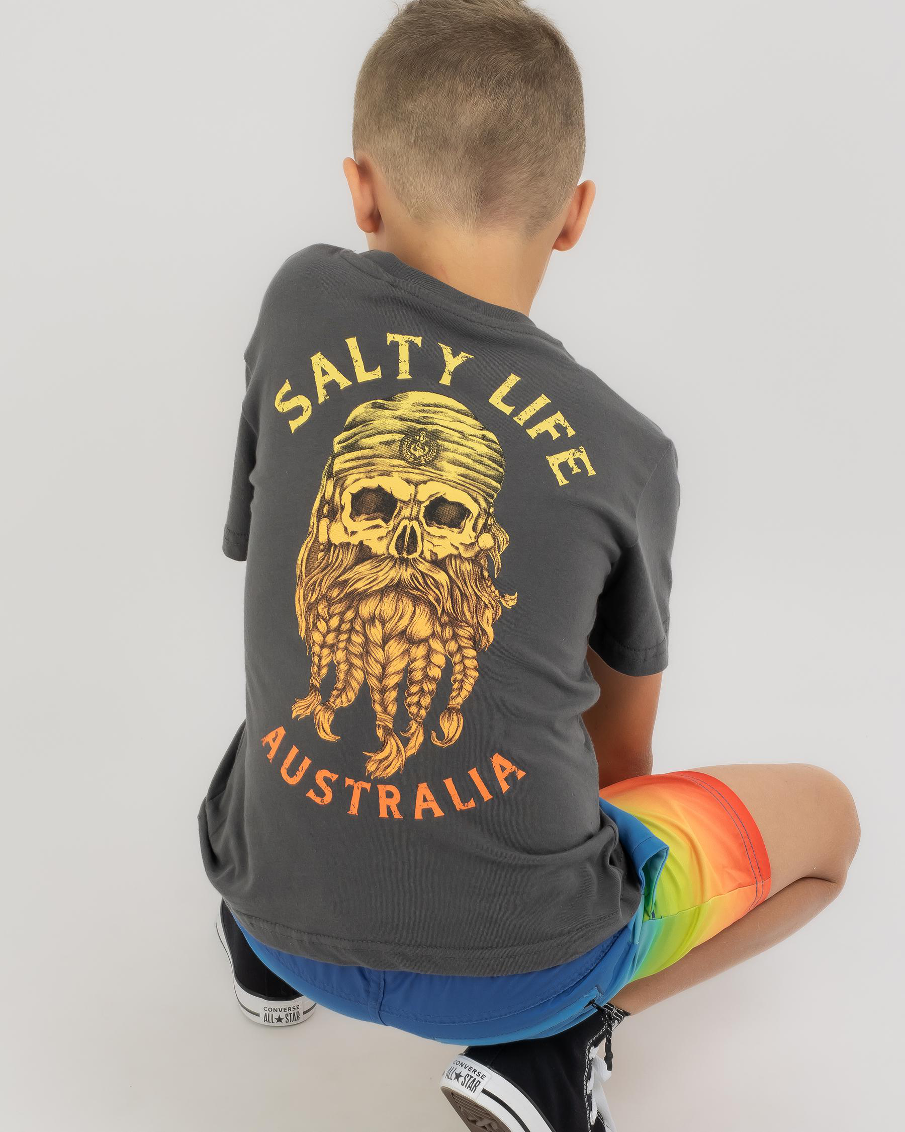 The Salty Life Toddlers' Hollander Fade T-Shirt in Slate Blue is a stylish choice for your little one's wardrobe.