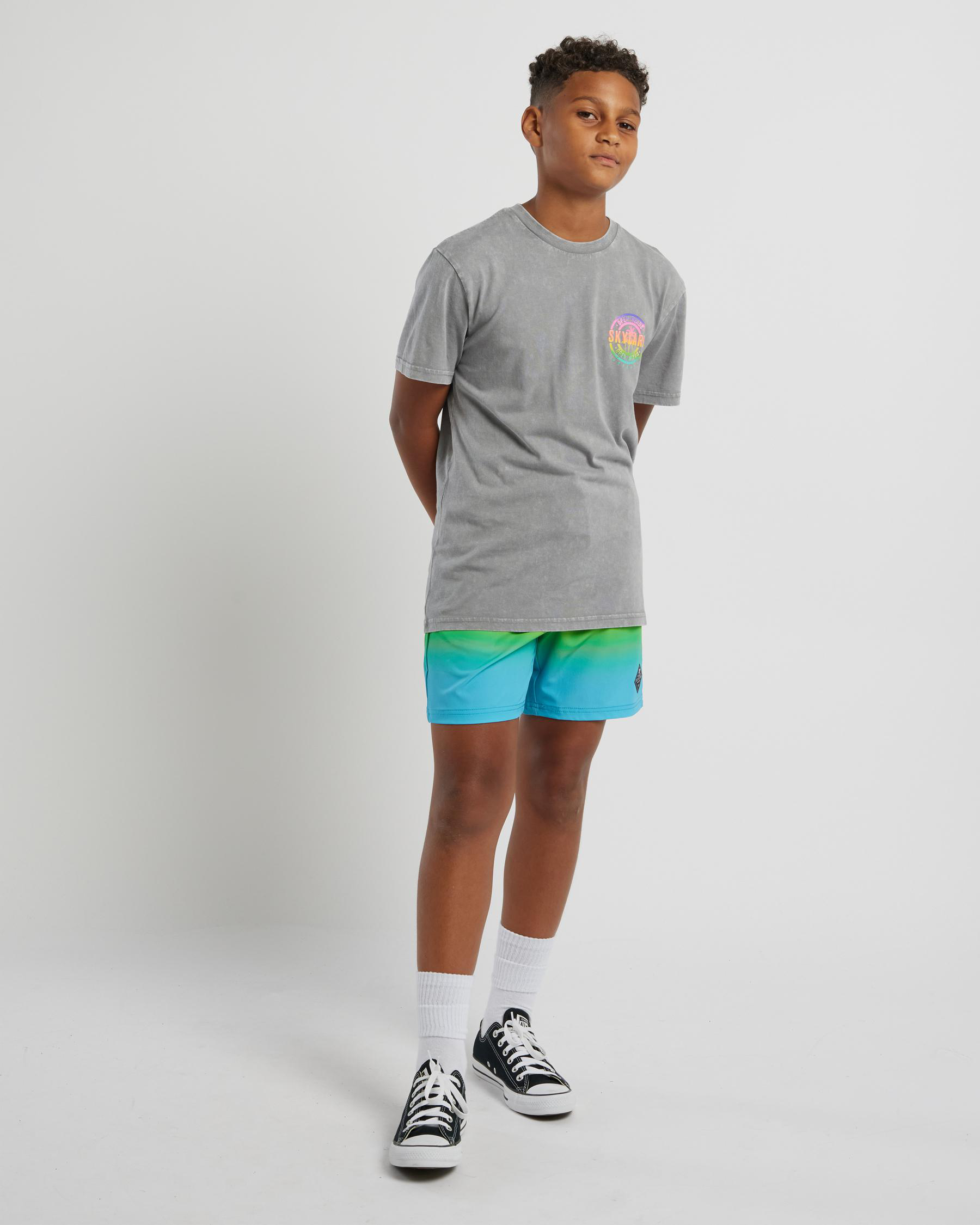 The Skylark Boys' Indulge T-Shirt in Slate Blue offers a cool and versatile look for any young trendsetter.